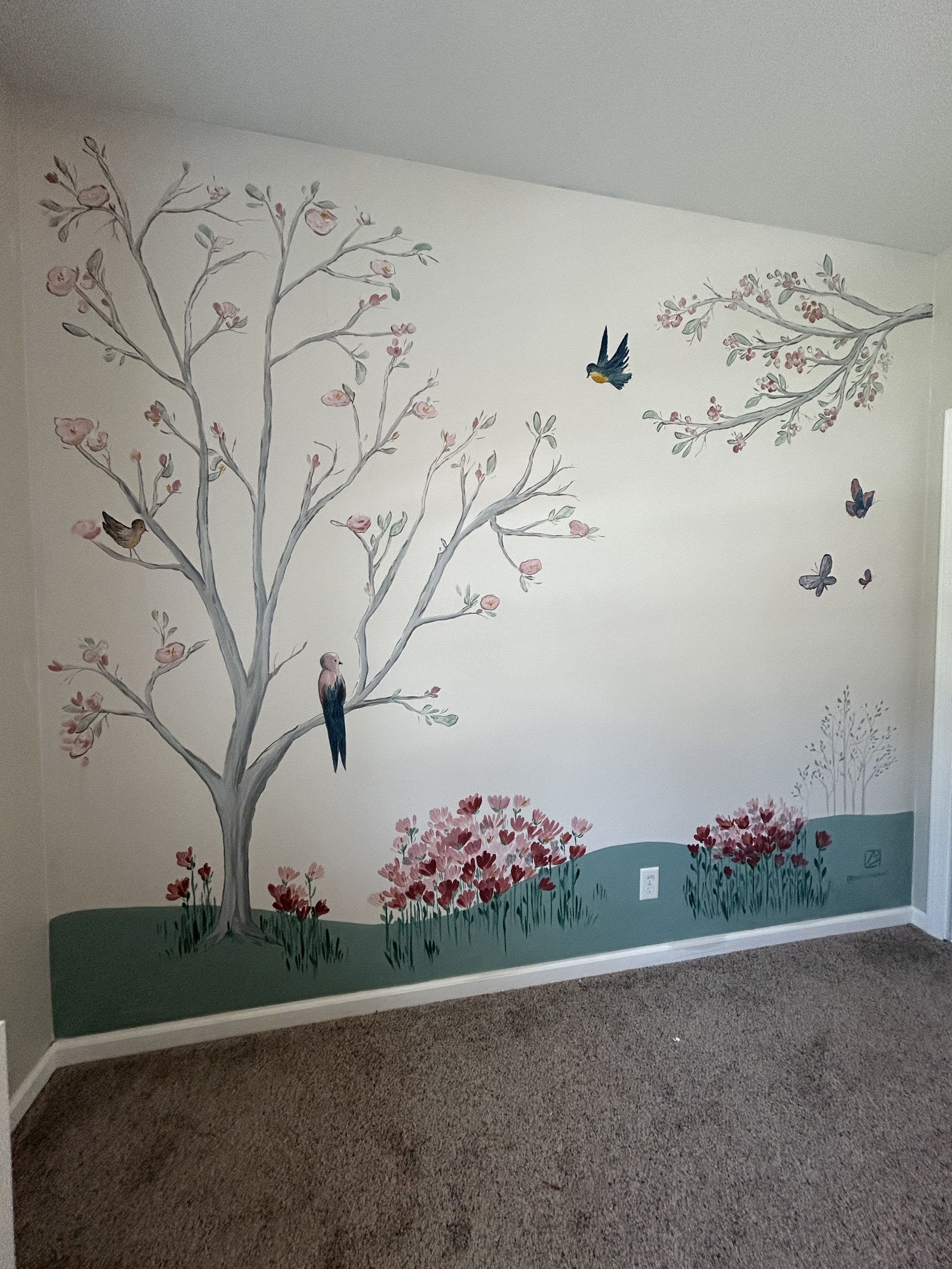 This mural was designed for two little girls’ bedroom. It’s simple yet whimsical and adds such a delightful highlight to the space these girls share.